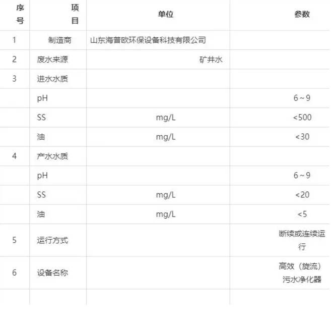 在高懸浮物污水處理中,HPO-XL型高效污水凈化器顯示了較大的技術(shù)優(yōu)勢。它無須設(shè)置預沉池,可以快速連續(xù)高效地將 SS≤5000mg/L 的污水凈化到 5~30mg/L,該技術(shù)最高可以處理 SS≤10000mg/L 的污水,為高濃度含煤污水、灰渣水、礦井污水、砂石骨料沖洗污水、施工污水、高懸浮物污水處理開辟了一條新途徑。